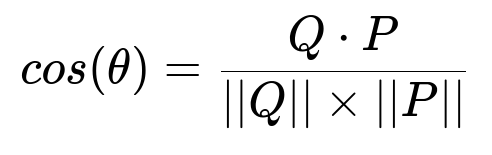An appropriate embedding model (for instance a 1536-dimensional text-embedding model) converts each piece of text into a vector. The following formula measures the similarity between query vector Q and product vector P: