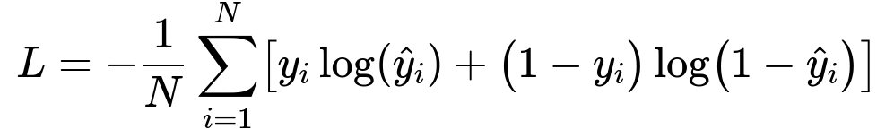 Here, y_{i} is the ground-truth label for item relevance. hat{y}_{i} is the predicted probability that item i is relevant. N is the total number of training samples. This loss function penalizes wrong predictions and encourages correct classification probabilities.