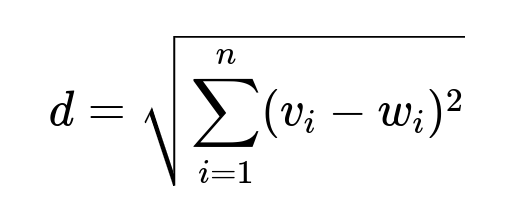 Parameters: v and w are the two embeddings being compared; v_i and w_i are their respective components. The goal is to find neighbors with minimal distance or maximum inner product.