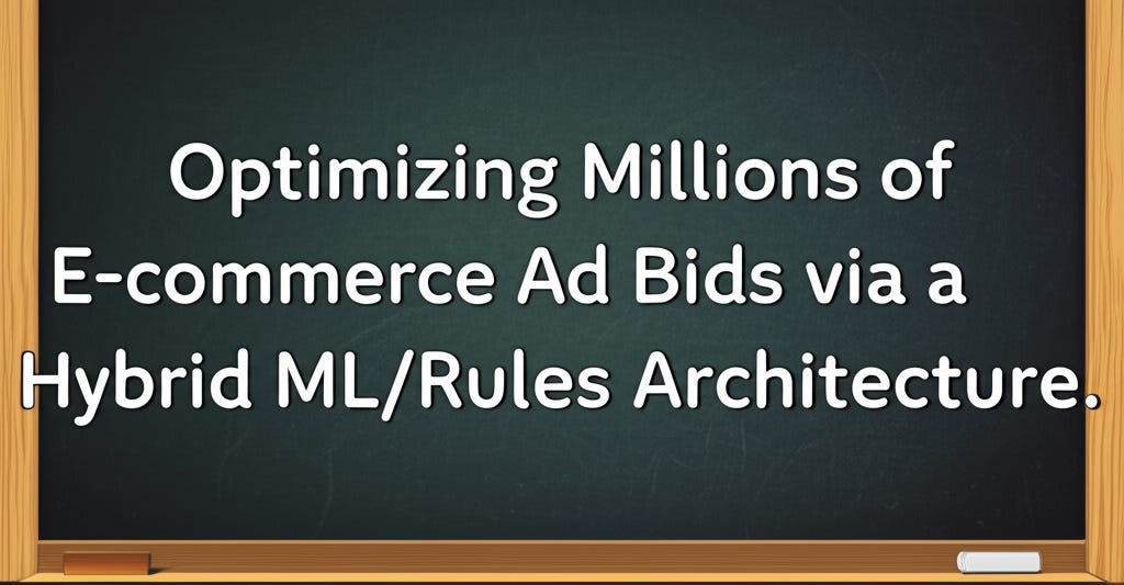 ML Case-study Interview Question: Optimizing Millions of E-commerce Ad Bids via a Hybrid ML/Rules Architecture.