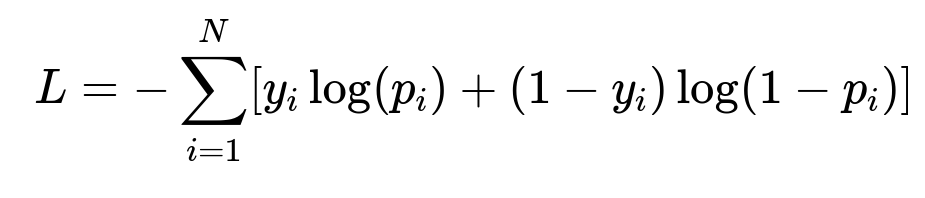 N is the total number of samples. y_i is the ground truth label indicating if the item was clicked for the i-th sample. p_i is the model's predicted probability of the item being clicked.