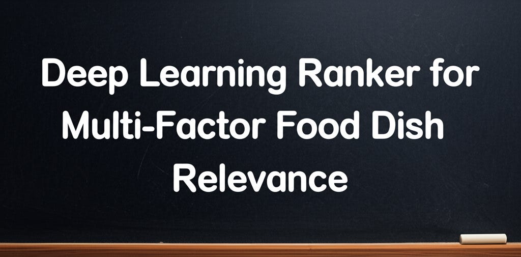 ML Case-study Interview Question: Deep Learning Ranker for Multi-Factor Food Dish Search Relevance