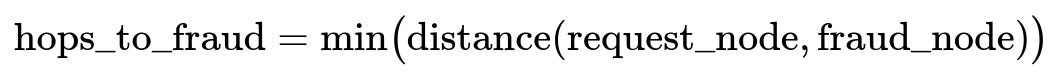 Here, request_node is the central node for the new transaction, and fraud_node indicates a node previously flagged as fraudulent. The distance function can be computed by breadth-first search. If the shortest path is small, it might signal a potential link to known fraud.