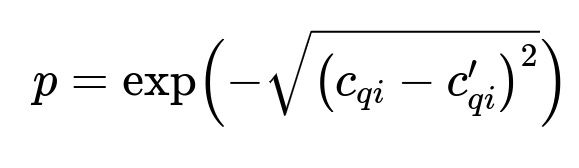 Here, c_{qi} is the true embedding of a character and c_{qi}' is the predicted embedding. A higher probability indicates a better match between predicted and actual embeddings.