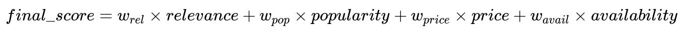 Below is an example formula for a multi-objective ranking score that might be one of the candidate actions the Contextual Bandit chooses: