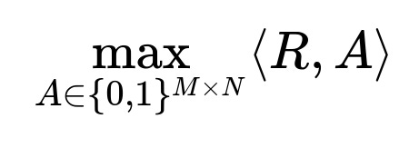 The expression < R, A > represents the sum of element-wise products R_{ij} * A_{ij}.