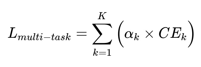 alpha_k is a weight controlling how much each task influences the overall loss.