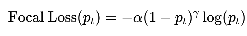 Here, p_t is the model’s estimated probability for the correct class. alpha is a weighting factor for class imbalance. gamma is the focusing parameter that increases the loss for hard-to-classify examples. This approach improves model performance on minority violation classes.