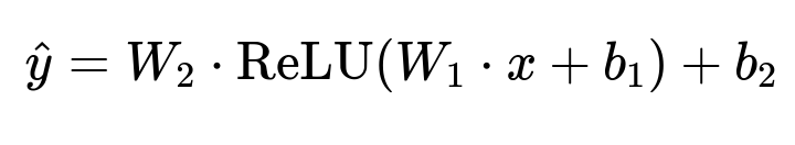 Where x is the input feature vector, W_1 and W_2 are weight matrices for the hidden and output layers, b_1 and b_2 are bias terms, and ReLU is the chosen activation function.