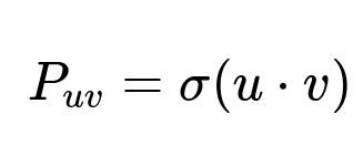 where P_{uv} is the predicted probability of engagement, u is the user embedding, and v is the video embedding. The model then applies the cross-entropy loss to compare P_{uv} with the actual engagement label.