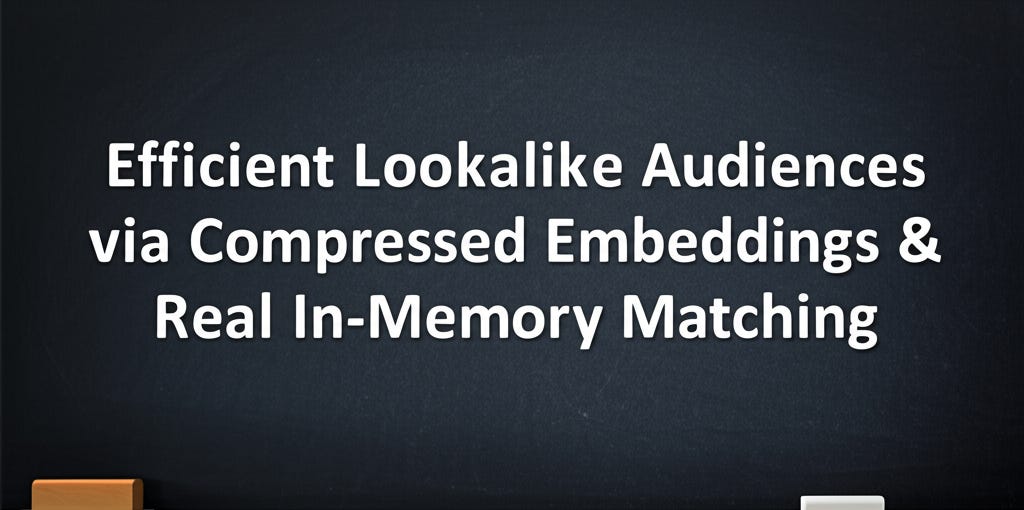 ML Case-study Interview Question: Efficient Lookalike Audiences via Compressed Embeddings & Real-Time In-Memory Matching