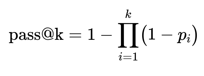 Where p_i is the probability that the i-th sample passes the test suite. This measures how likely the model is to produce a correct solution within k attempts.