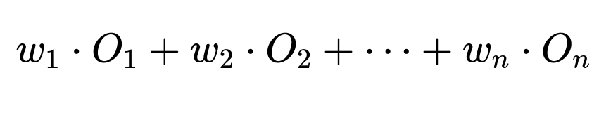 The parameter w_i is the weight for objective O_i. We tune these weights by simulating trade-offs in offline experiments. A curve is generated by varying w_i and assessing how much we sacrifice on one metric by gaining on another.
