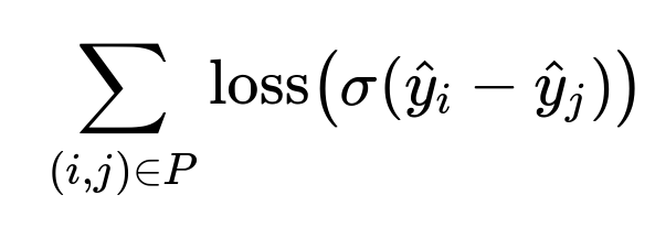 Here, (i,j) are pairs of restaurants, and \hat{y}_i is the model’s score for restaurant i. The function \sigma could be a sigmoid.