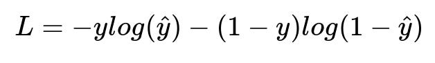 Models that predict a userâs engagement or purchase probability can be trained with an objective function. For classification tasks, a common choice is cross-entropy loss. The formula for cross-entropy loss for a single instance is shown below.