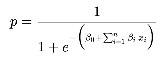 Below is a common logistic regression formula that captures how the probability of a certain class is computed from input features:
