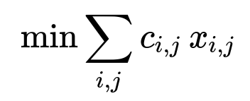 A common formulation is to minimize total cost or lateness while respecting constraints like driver availability, order deadlines, and assignment exclusivity. A simple version of the objective might look like this: