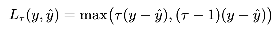 Here, y is actual demand, hat{y} is predicted demand, and tau is the quantile in [0,1]. If tau = 0.5, the model learns the median estimate. If tau = 0.9, the model learns the 90th percentile.