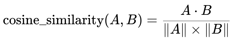 This formula is central to retrieval augmented approaches. It calculates how close two vectors are in multi-dimensional space, helping the system identify the most relevant documents.