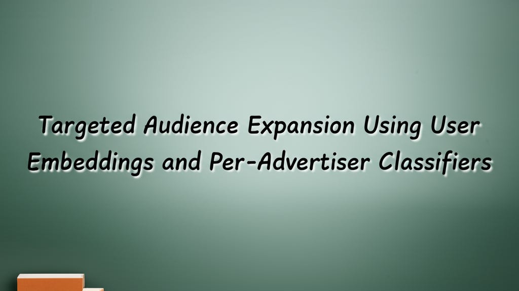 User Embeddings + Per-Advertiser Classifier Pre-trained universal user embeddings, derived from user-item interactions, encode behavioral patterns into dense vectors. Feeding these vectors into a multi-layer perceptron (MLP) classifier for each advertiser combines both benefits. Embeddings solve data sparsity and speed up convergence, while per-advertiser classifiers learn seed-specific patterns. This combined approach excels on small and large seed lists.