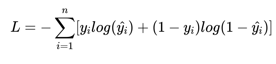 L is the negative log-likelihood loss function. y_i is the actual label (1 if user clicked, 0 otherwise). hat{y_i} is the predicted probability of a click. n is the total number of training samples.