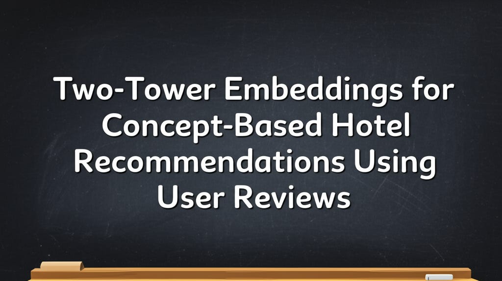They gathered one year of booking data with corresponding user reviews. Each review is parsed with a proprietary tagging system to identify key concepts (for example, âspa,â âchild-friendly,â âbreakfastâ), each linked to a sentiment label. This creates training samples mapping hotels to concept-sentiment pairs.