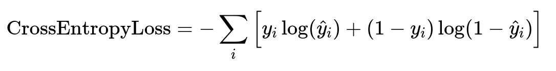 Where y_i is the true label (0 or 1), and hat{y}_i is the predicted probability of class 1 for sample i.