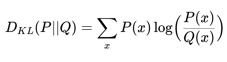 P(x) is the probability of x in the current distribution, Q(x) is the probability of x in a historical or reference distribution. KL Divergence indicates how much the current data distribution deviates from the reference distribution.