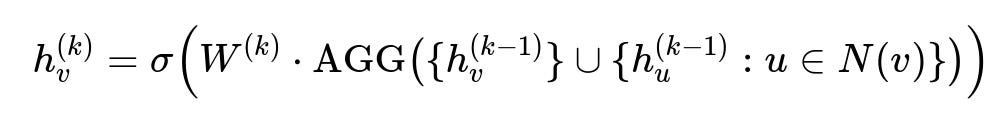 h_{v}^{(k)} is the updated embedding of node v at layer k.