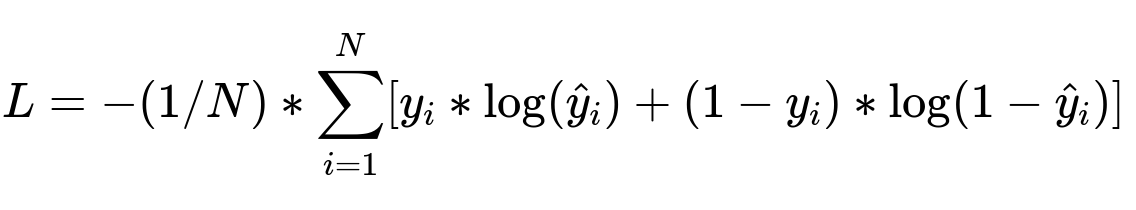 hat{y}_i is the predicted probability of fraud for the i-th example.