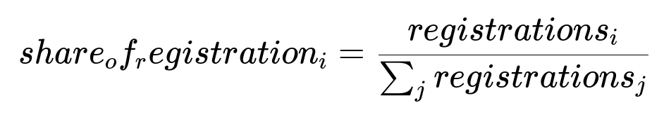 Below is the core formula often used to define share of registrations for an artist in a campaign: