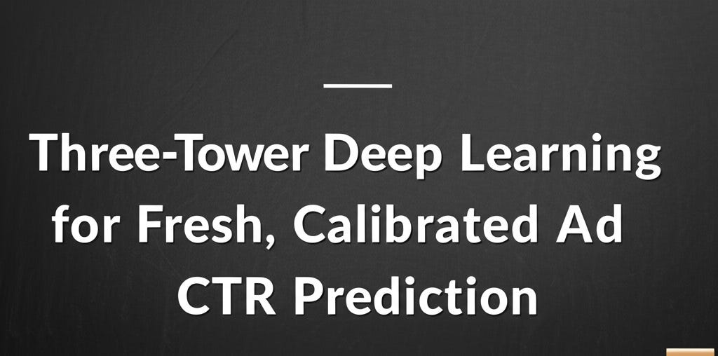 ML Case-study Interview Question: Three-Tower Deep Learning for Fresh, Calibrated Ad CTR Prediction.