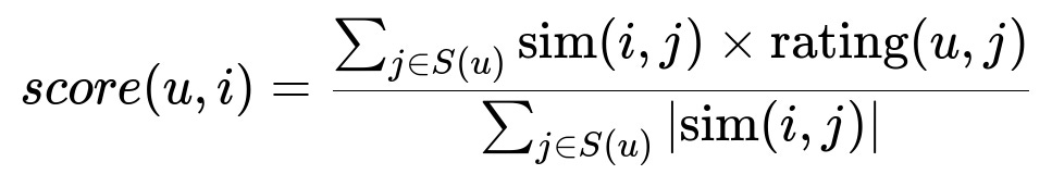 sim(i,j) is the similarity between item i and j, often computed via cosine similarity or other distance metrics.