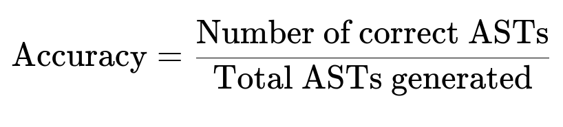 Number of correct ASTs: total count of generated ASTs that pass the equivalence check by the judge.