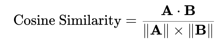 Where A and B are embedding vectors. A ¡ B is the dot product of the vectors, and ||A|| and ||B|| are their magnitudes. High similarity values mean the query is closer in meaning to the chunk.