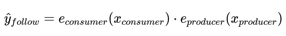 e_{producer}(x_{producer}) is the output embedding from the producer tower, given account features x_{producer}.