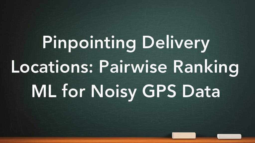 A direct regression tries to guess actual latitude and longitude coordinates directly. This is risky because the training labels can be inconsistent (drivers confirm deliveries at random spots). Pairwise comparisons harness relative preferences, which are easier to learn from noisy data. Also, pairwise ranking can incorporate map-based constraints, giving robust results even with partial or scattered GPS pings.