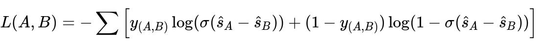to a probability.This summation extends over all training comparisons within a batch. The model updates weights to favor the correct preference.