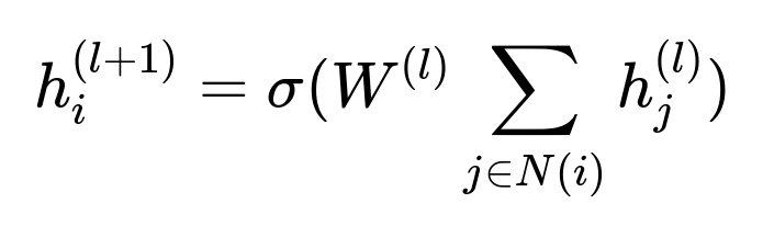 h_i^{(l)} is the embedding of node i in the l-th layer.