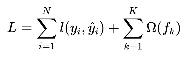 Omega(f_k) is the complexity penalty that prevents overfitting.