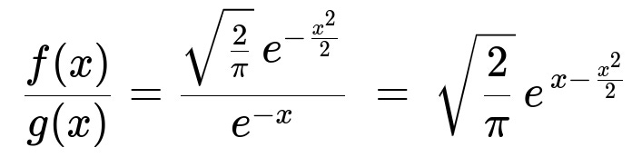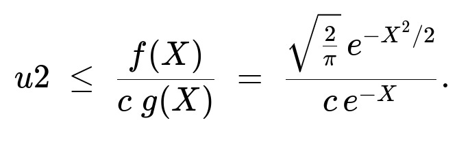 With c chosen as above, this ratio is always ≤ 1. If the acceptance criterion does not hold, reject X and repeat.