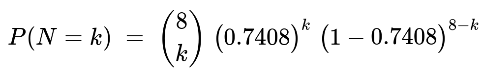 return math.comb(n, k) * (p**k) * ((1-p)**(n-k))