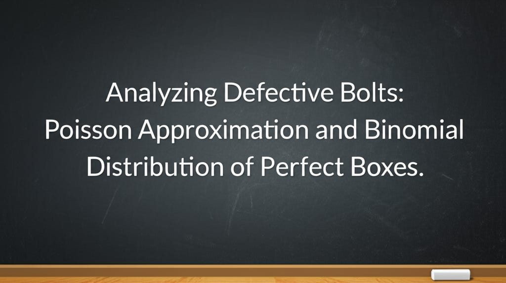 ML Interview Q Series: Analyzing Defective Bolts: Poisson Approximation and Binomial Distribution of Perfect Boxes.