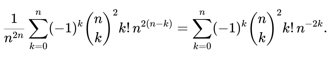 Finally exponentiate at the end. Or, if you only need the ratio to (n^{2n}), you can keep track of (\log(\text{numerator}) - \log(\text{denominator})).