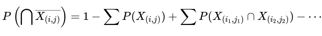 We define “bad” events X_(i,j) = “The pair (i in A, j in B) is mutual best friends.” We want the probability that none of these bad events happen. The Inclusion-Exclusion principle states: