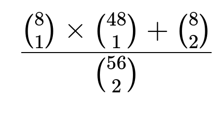 Numerator: choose(8,1)*choose(48,1) = 384