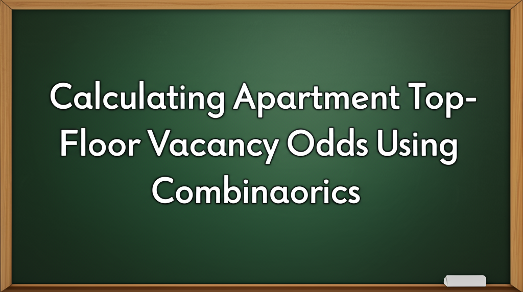 Hence the probability is 384 / 1540 = 0.2494. This value highlights the difference between “at least one” and “exactly one.” In practical terms, it shows that if the building occupant is fine with having exactly one top-floor vacancy (perhaps for lesser crowding or other personal preferences), this figure clarifies the precise likelihood.