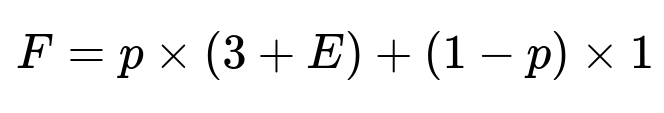 Because the miner returns to the start with probability p (spending 3 days first) and successfully escapes (spending 1 day) with probability (1-p). Once you have that new equation for F, you would plug it back into the expression for E. In other words, the general approach remains: