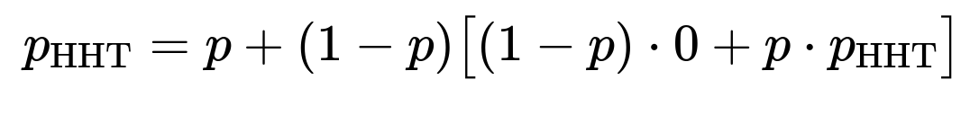 Let p be the probability that HHT occurs before HTT once the first H has already appeared. Then: