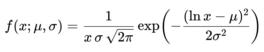 Here x is the time spent per day (strictly positive). The parameters mu and sigma represent the mean and standard deviation of the underlying normal distribution in log space. In typical scenarios, mu is influenced by the central tendency in log scale, while sigma indicates how spread out the time usage is in log scale. Although lognormal is a plausible modeling choice, real-world data might still deviate and exhibit a more general heavy-tailed nature.